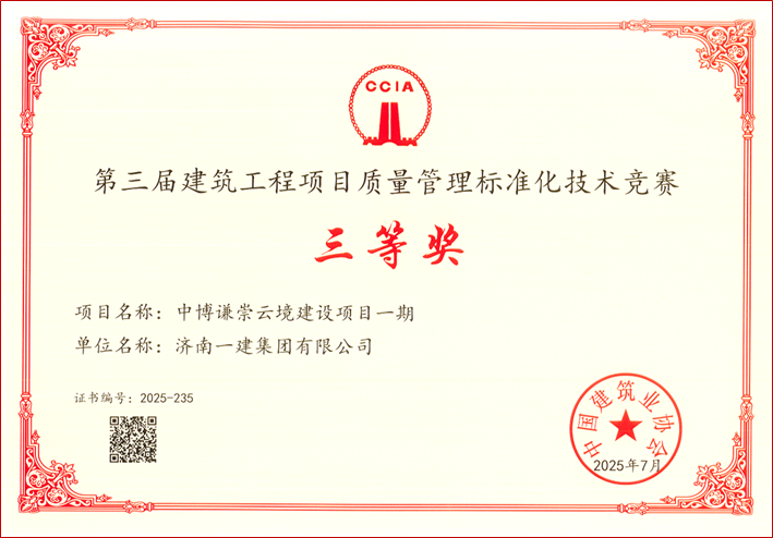 近日,中国建筑业协会在广西南宁成功举办2025年全国建筑工程项目质量管理标准化暨质量专家经验交流会。会议旨在贯彻落实党的二十大报告关于“加快构建新发展格局、着力推动高质量发展”的重大部署和《质量强国建设纲要》精神。集团所属济南四建承建空天信息大学项目荣获“第三届建筑工程项目质量管理标准化技术竞赛一等奖”,济南一建承建中博谦崇云境项目荣获三等奖。